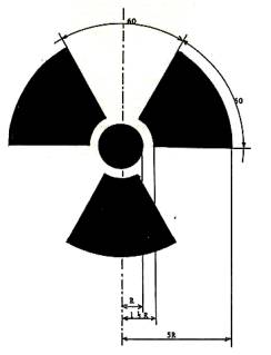 Het symbool van de radioactiviteit dient op elke deur te worden geplaatst
